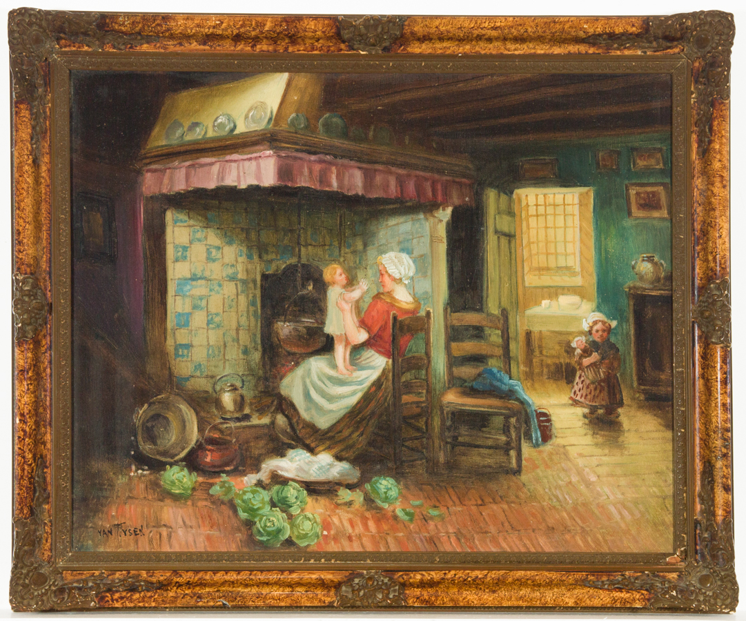 Van Tysen - Dutch Early 20th Century Oil, Mother & Child in An Interior