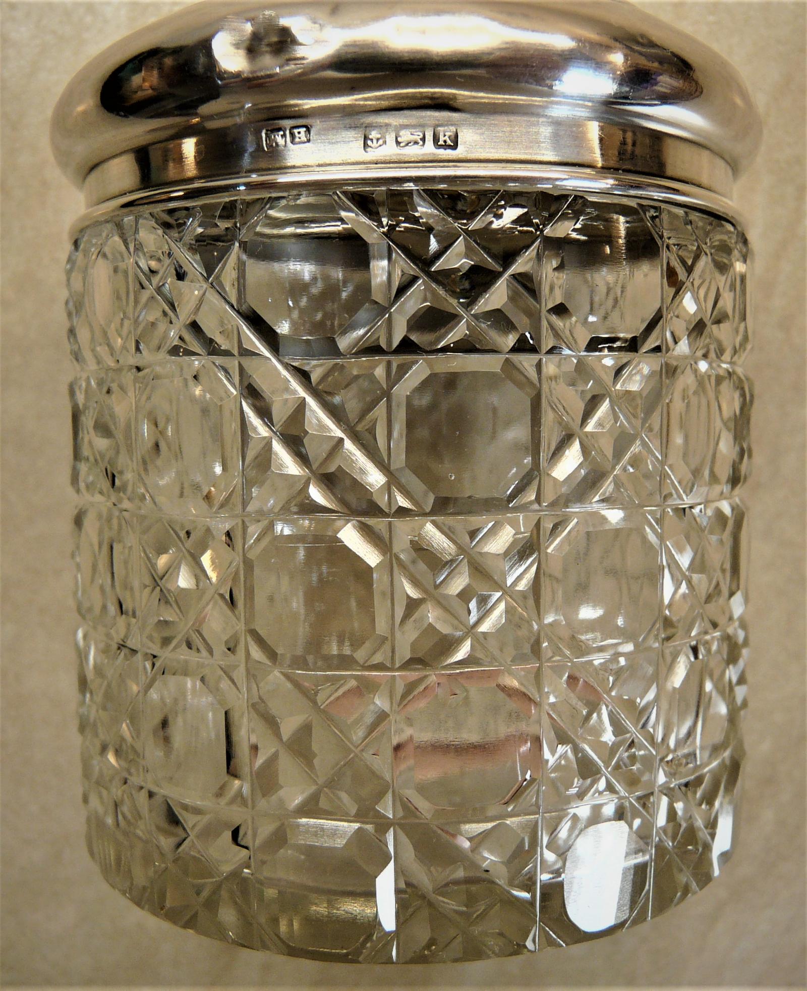 Vanity Jar: Cut Glass Vanity Jar with Silver Hallmarked Lid 1909
