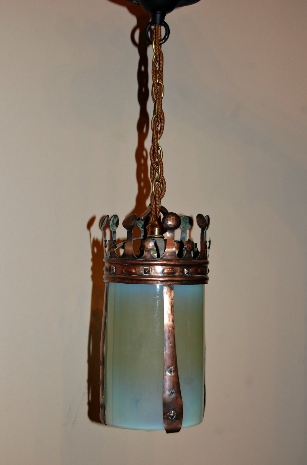 Vaseline Glass Lantern with Copper Fittings c.1900
