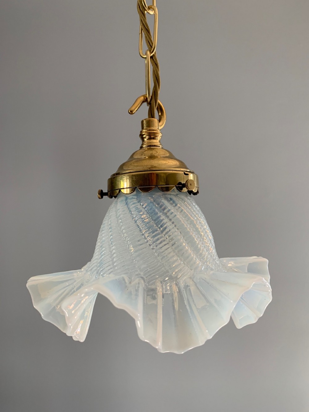Vaseline Opaque Ceiling Pendant Light, Rewired