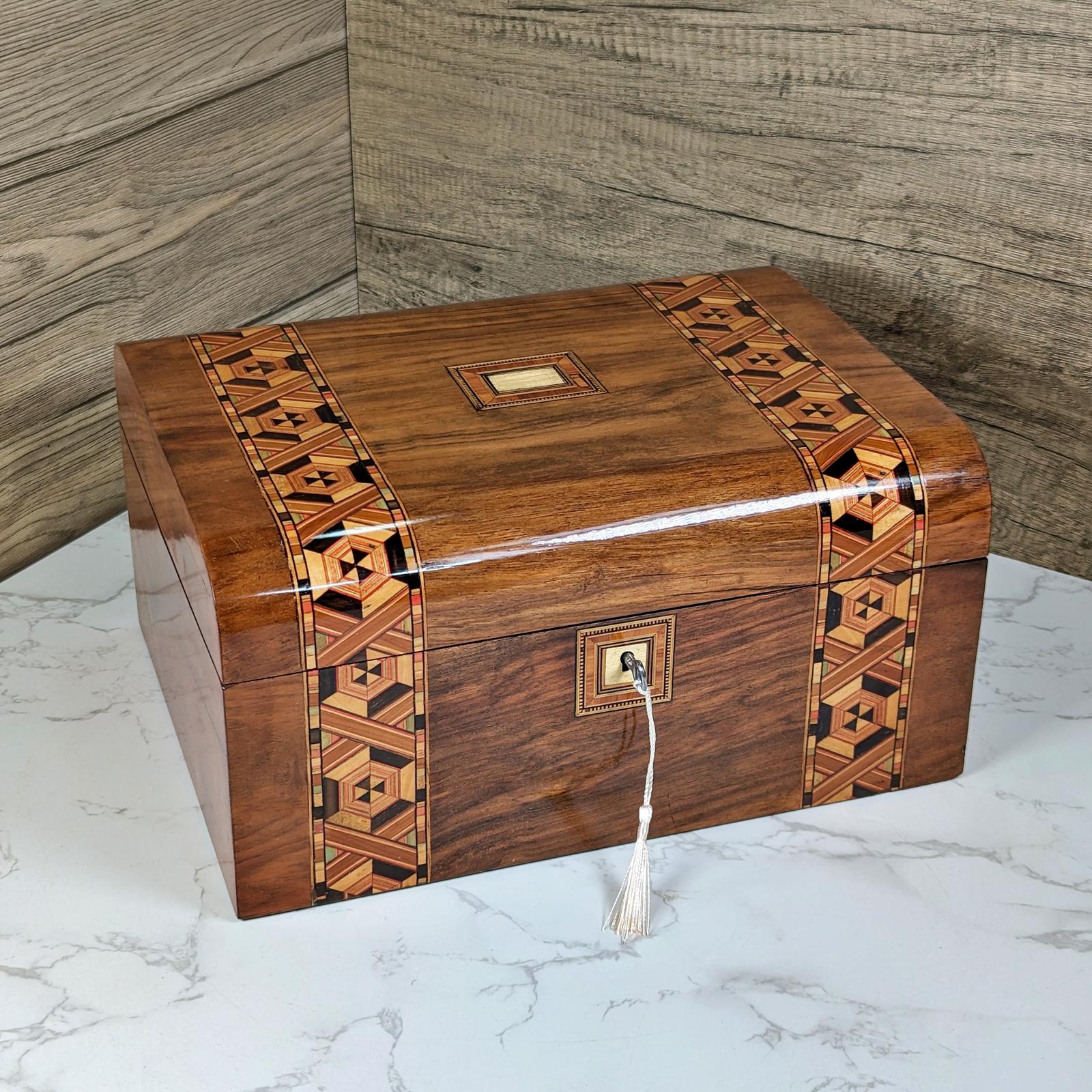 Vctorian Walnut & Inlaid Jewellery Box
