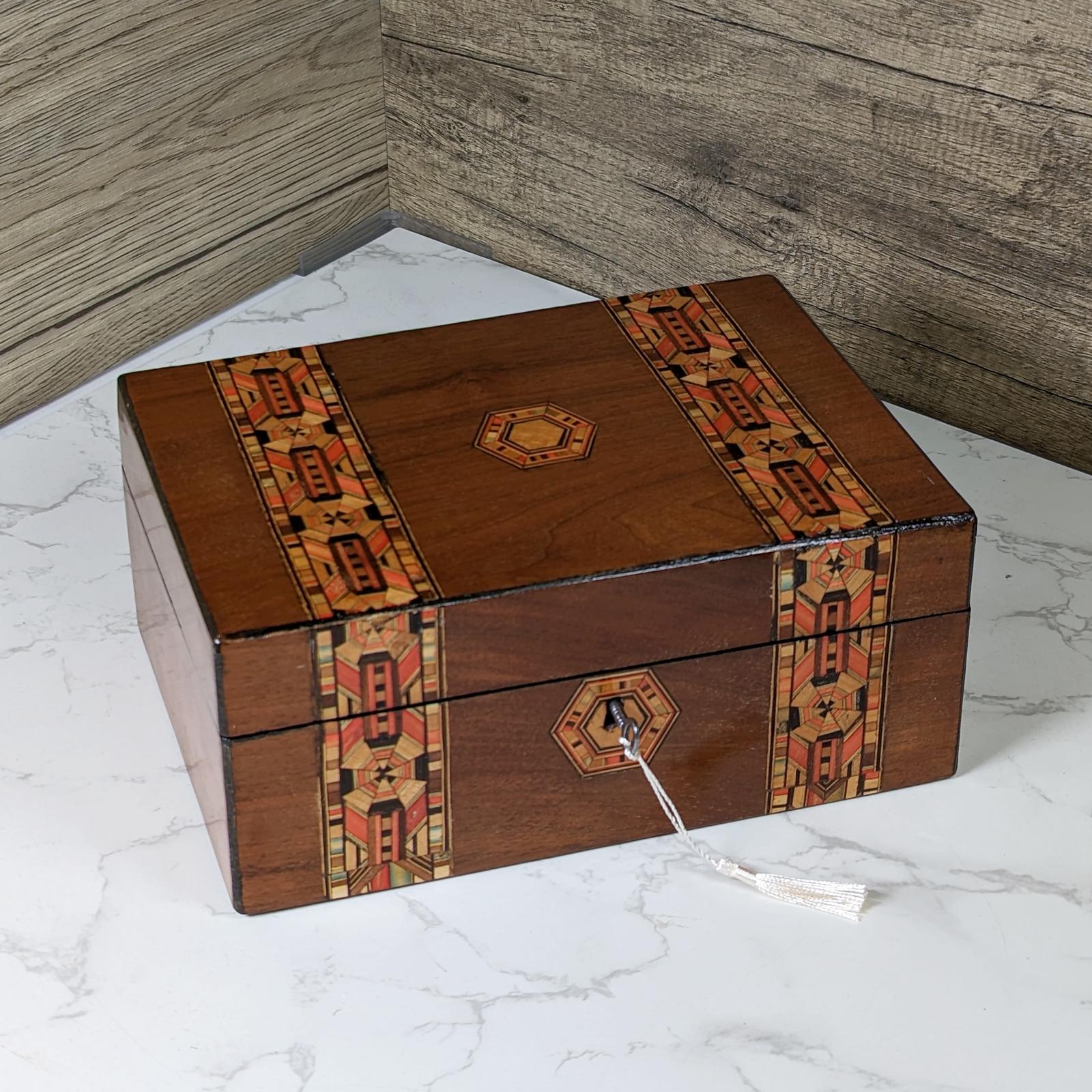 Vctorian Walnut & Inlaid Jewellery Box