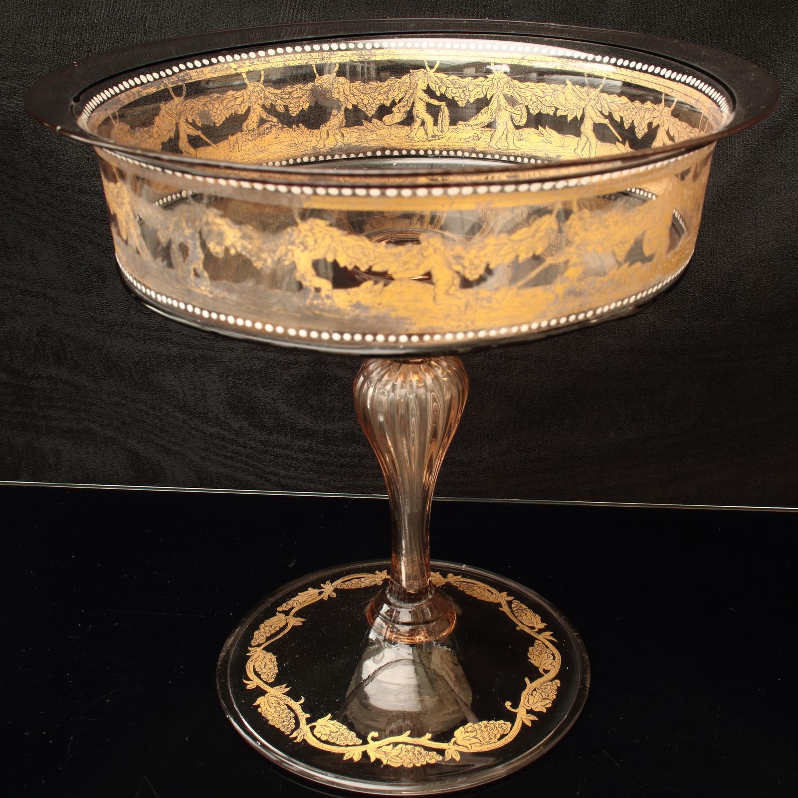 Oldewundors has clarified that the Venetian Gilt Glass Bowl Hand Blown with Cherubs and Vines (LA560762) is genuinely of the period declared with the date/period of manufacture being Early 20th Century