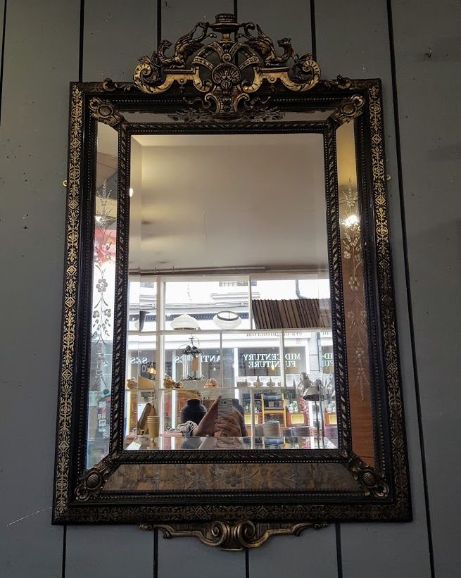 Venetian Glass & Ebonised Silver Gilt Cushioned Mirror c.1880