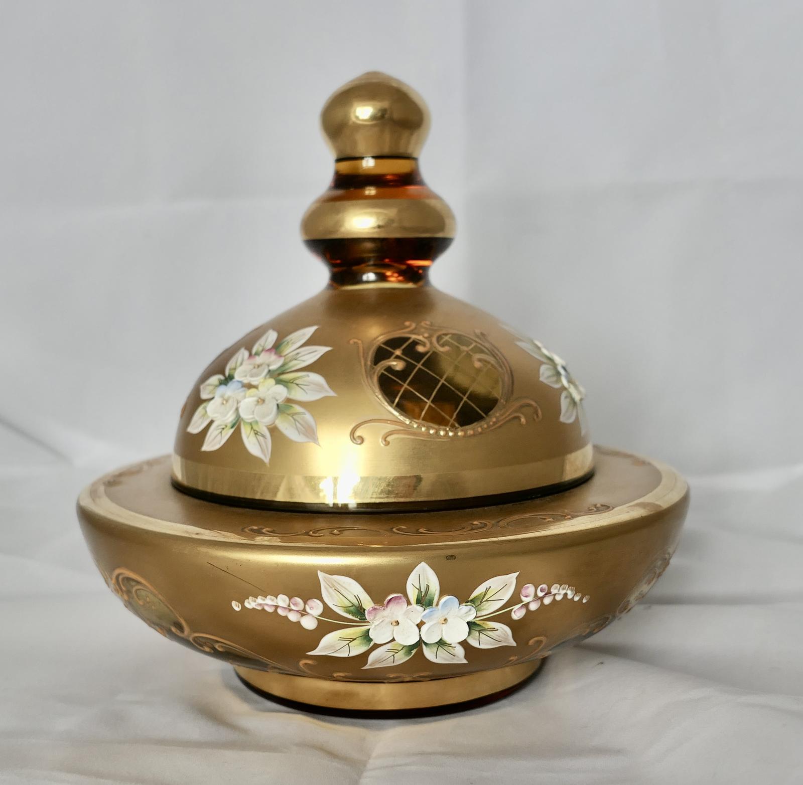 Venetian Gold Enamel Murano Glass Bonbonier with Lid