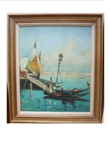 Venice Oil Painting on Canvas of 'Two Gondolas Moored' (29 x 25 inches)