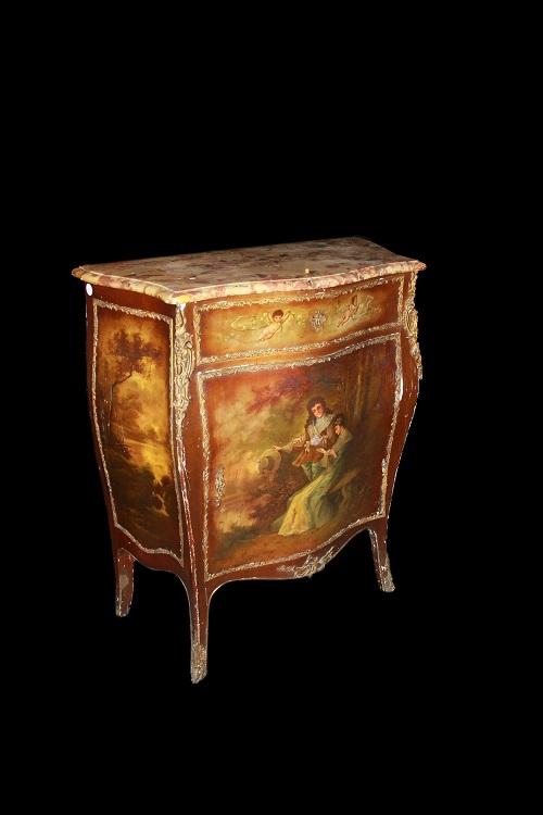 Vernis Martin Small Sideboard Painted with Gallant Scene and 19th Century Marble Top