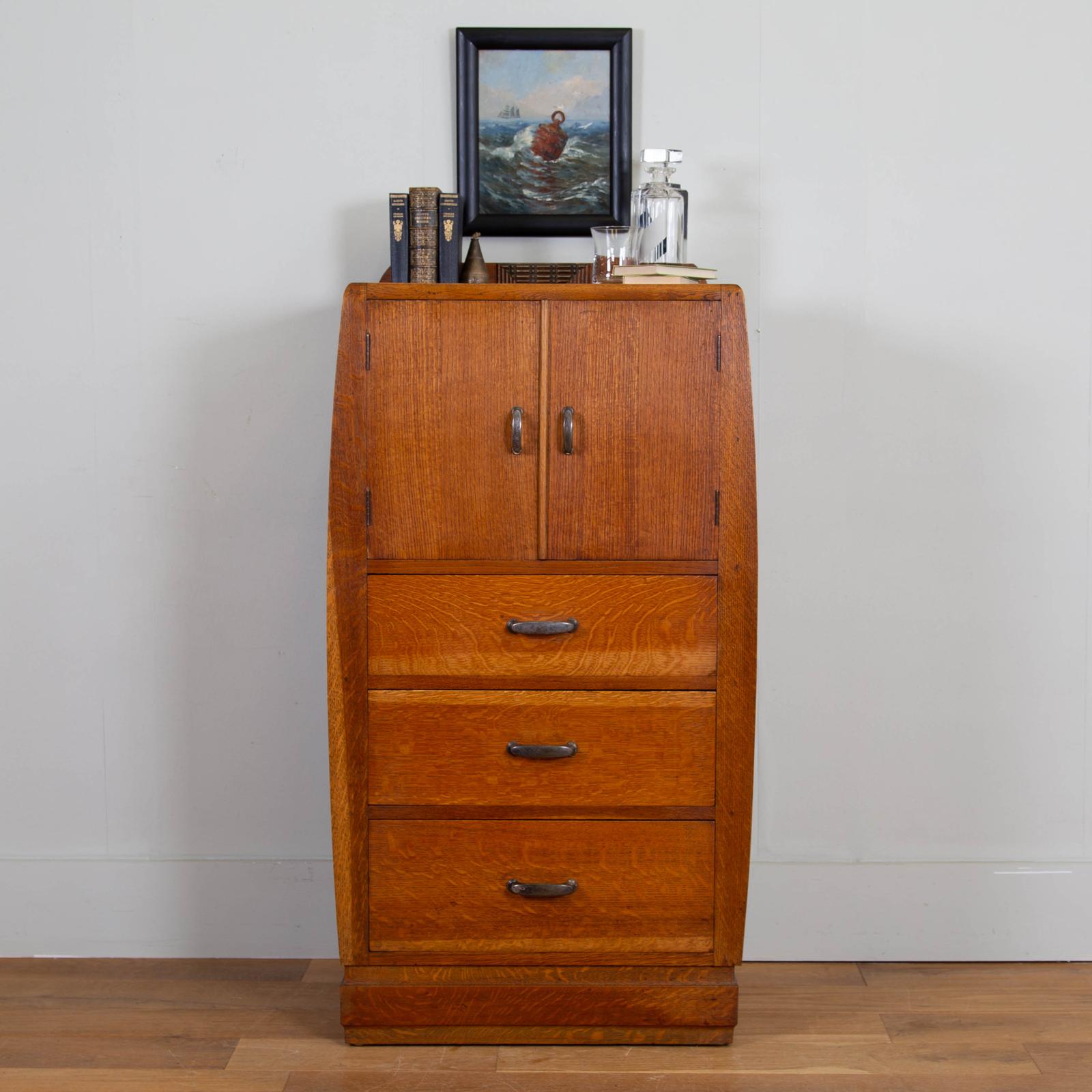 Very Attractive 1930s Art Deco Oak Tallboy 3 Drawer Chest