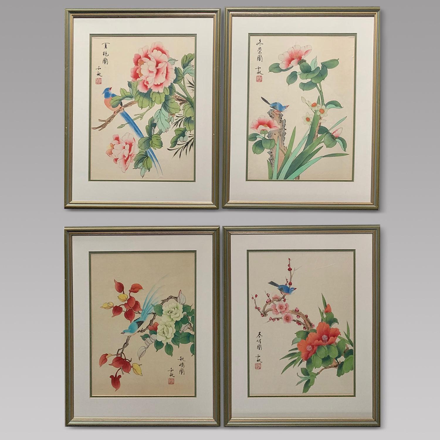 Very Attractive Set of Four Chinese Watercolours on Silk Pictures (1 of 5)
