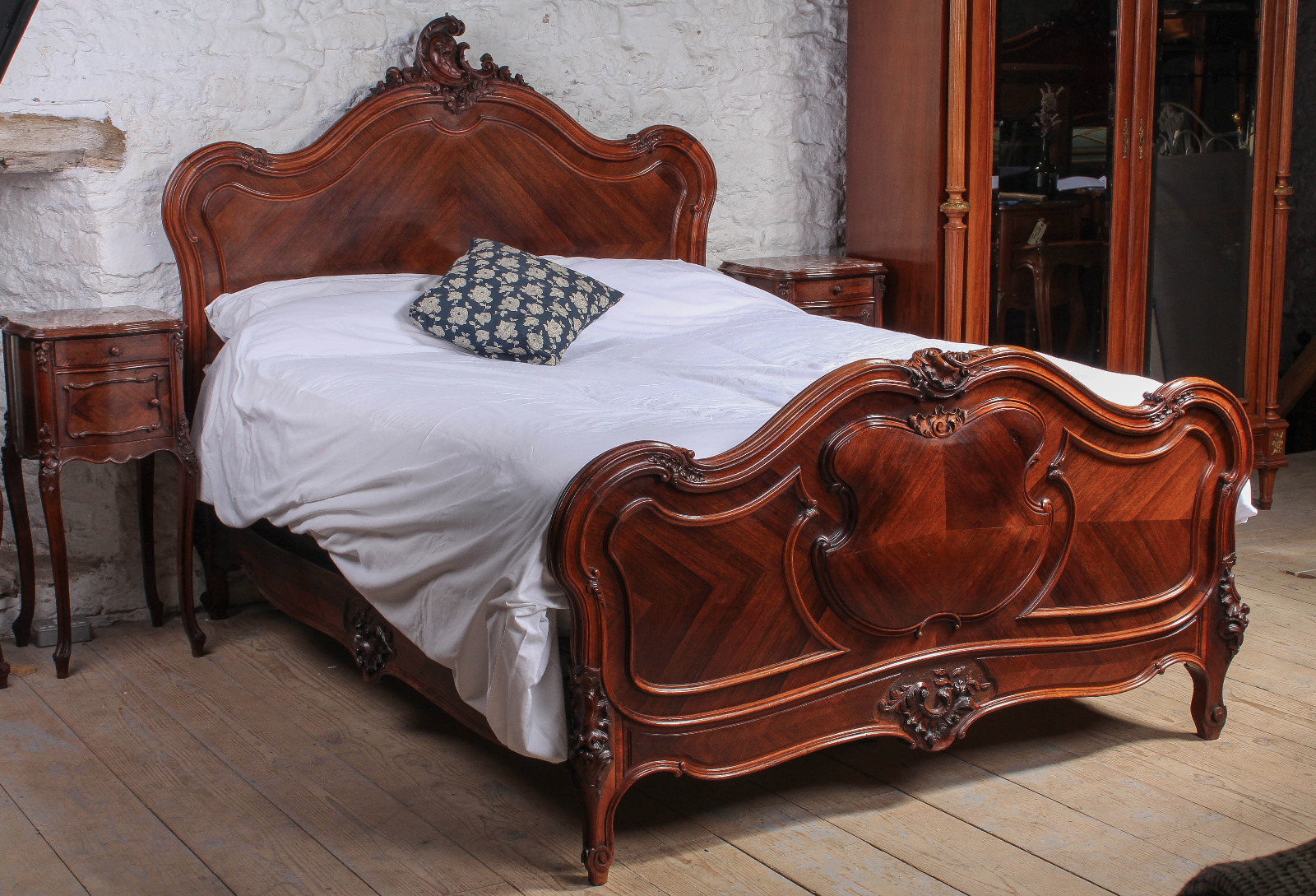 Very Beautiful Rosewood Louis XV Style King Size Bed & Matching Bedsides