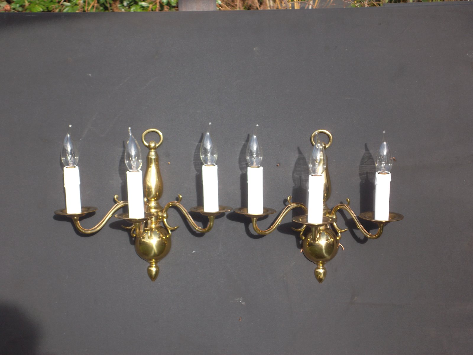 Very Beautiful Stunning Pair of Flemish Brass 3 Arm Wall Lights