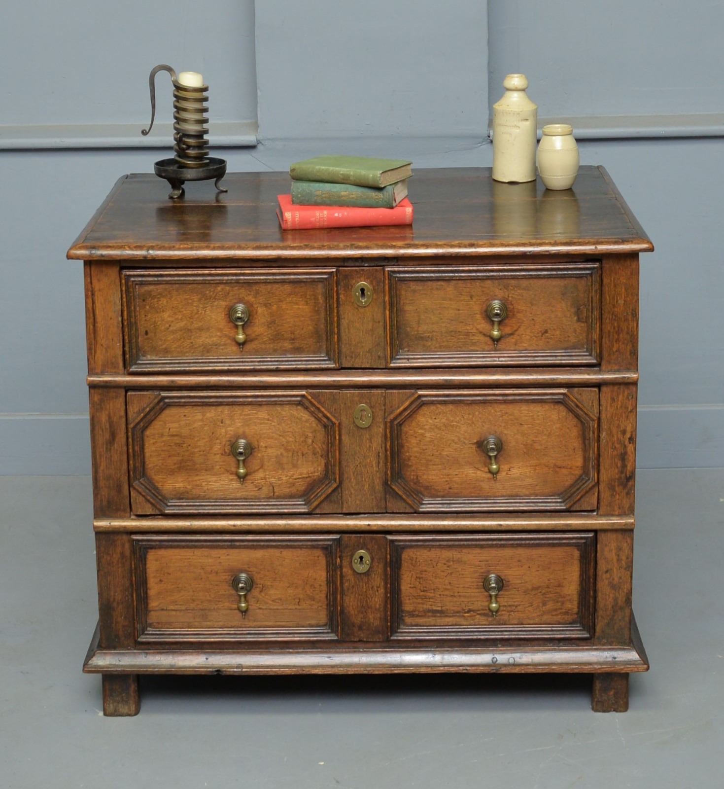 Very Charming Small 17th Century Geometric Oak Chest of Drawers