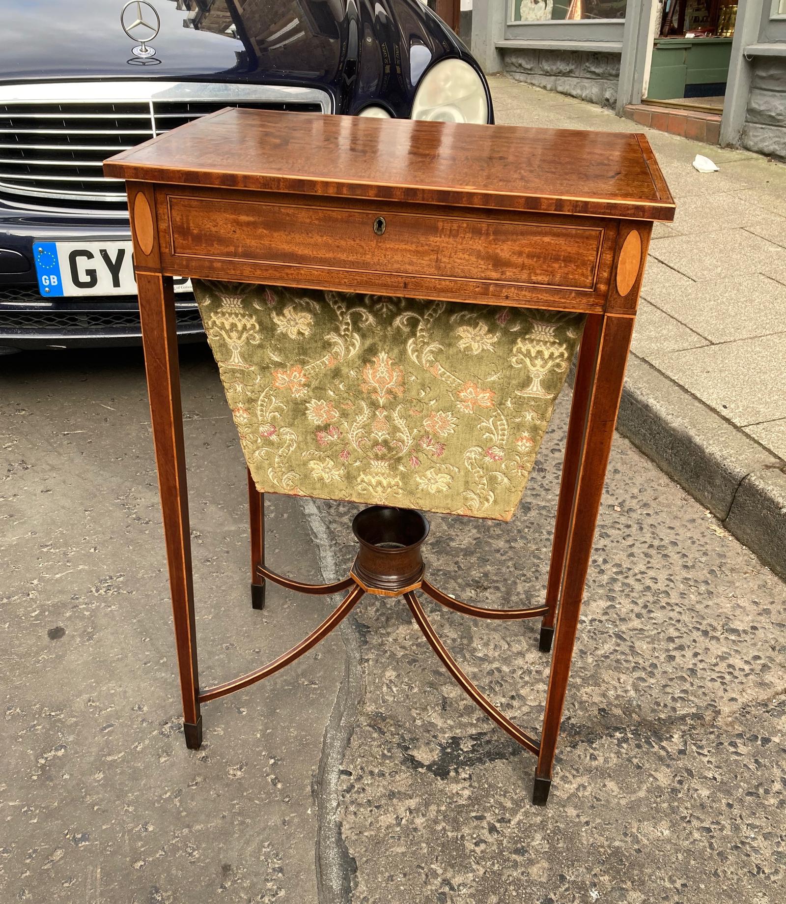 Very Elegant Sheraton Period Mahogany Ladies Sewing Table