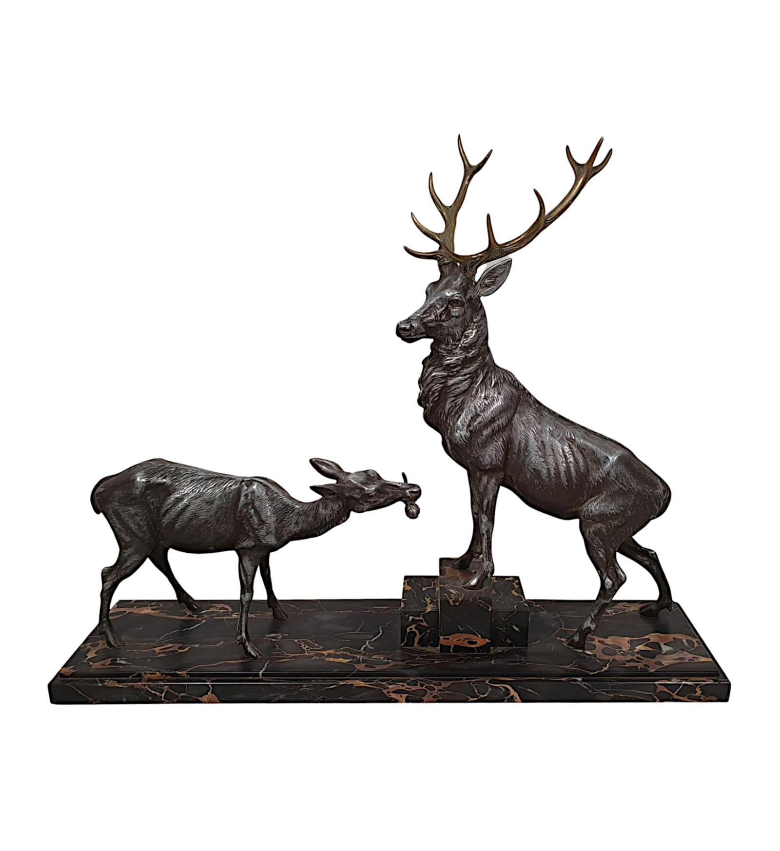 Very Fine Art Deco Animalier Sculpture of Stag & Doe by L. A. Carvin
