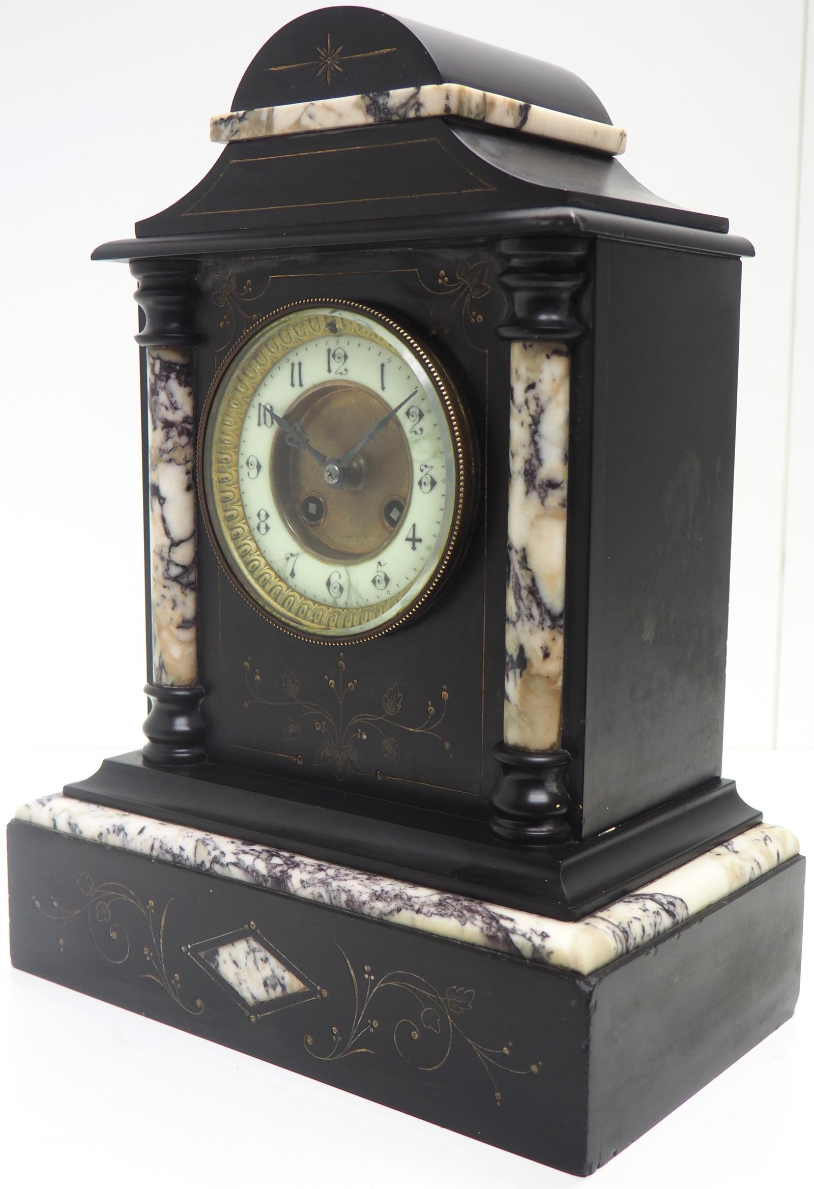 Very Fine French Slate & Marble Mantel Clock 8 Day Striking Mantle Clock