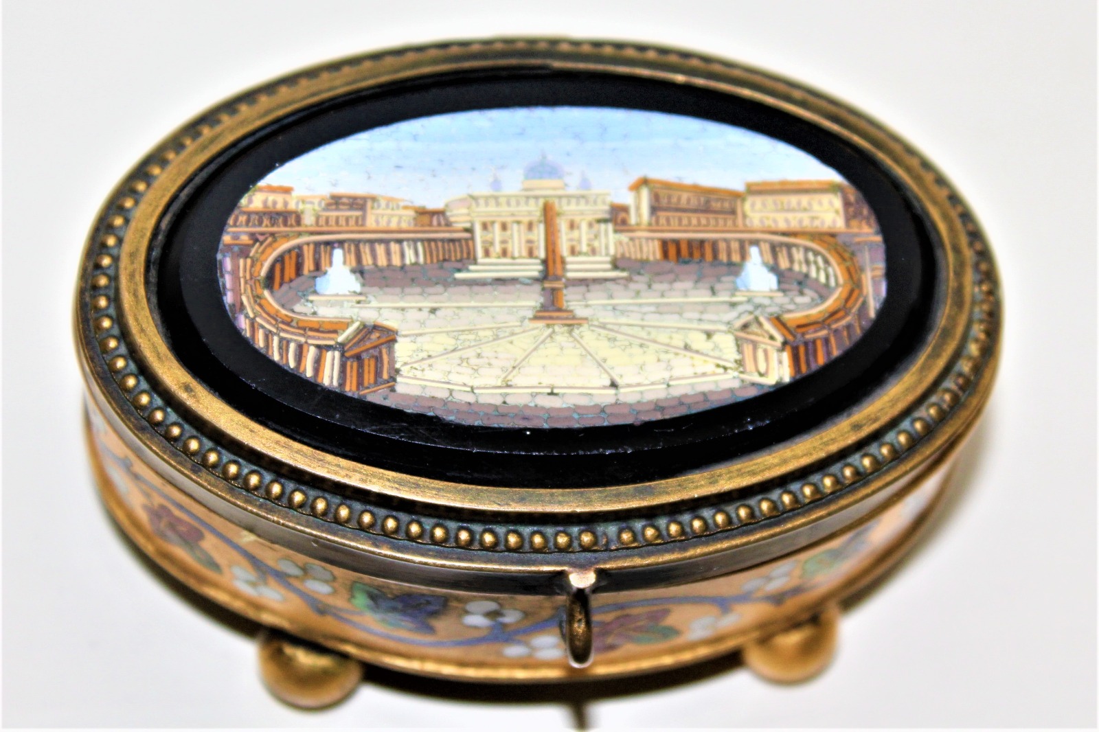 Very Fine Grand Tour Italian Micro Mosaic & Gilt Metal Box Depicting St Marks Square