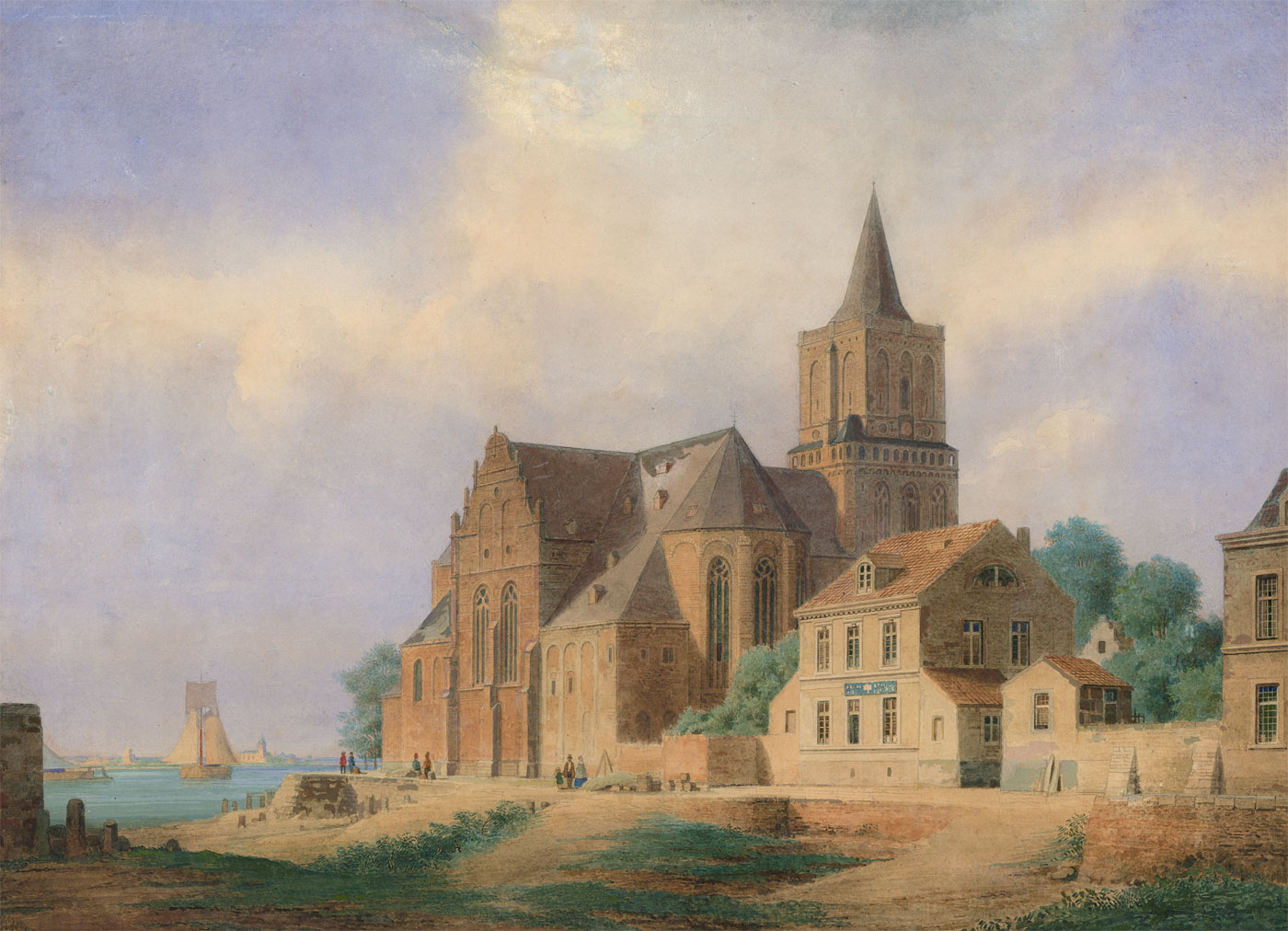Very Fine Late 19th Century Watercolour - Continental Church on a River