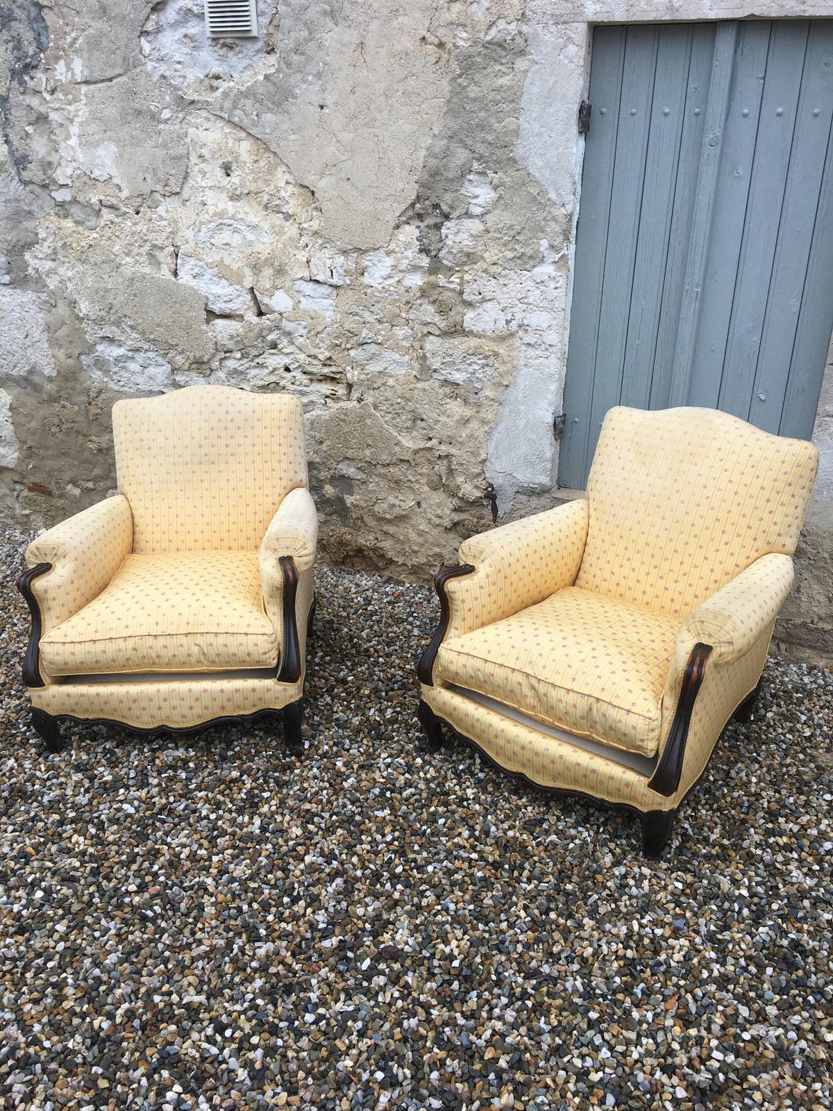Very Fine Pair of Mid 19th Century French Walnut Fireside Chairs c.1860