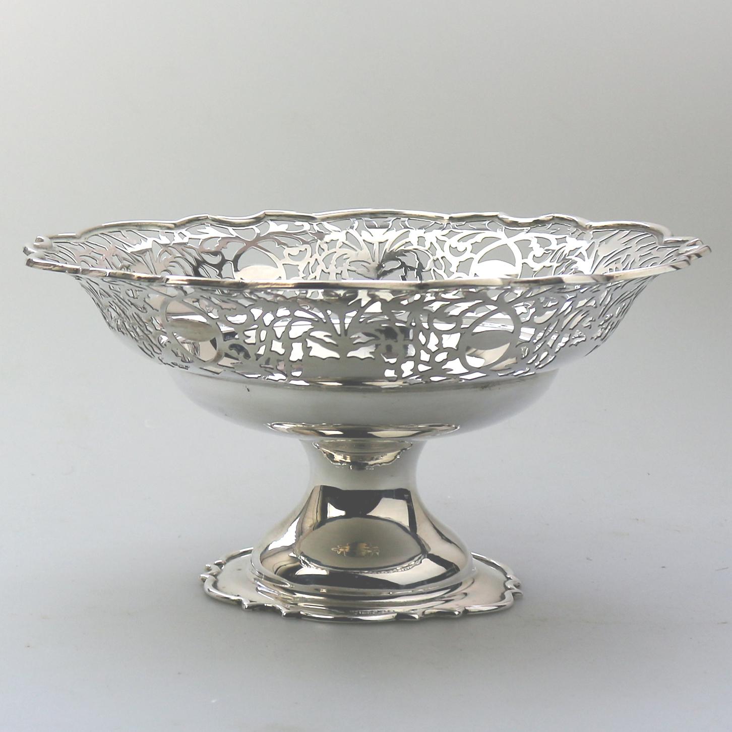 Very Fine Solid Silver Pedestal Pierced Bowl / Basket - Chester c.1937