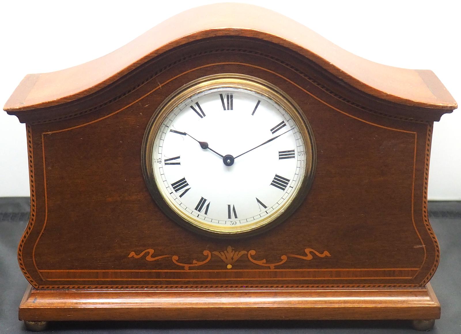 Very Good French 8-day Edwardian Enamelled Dial Inlaid Case Mantle Clock (1 of 9)