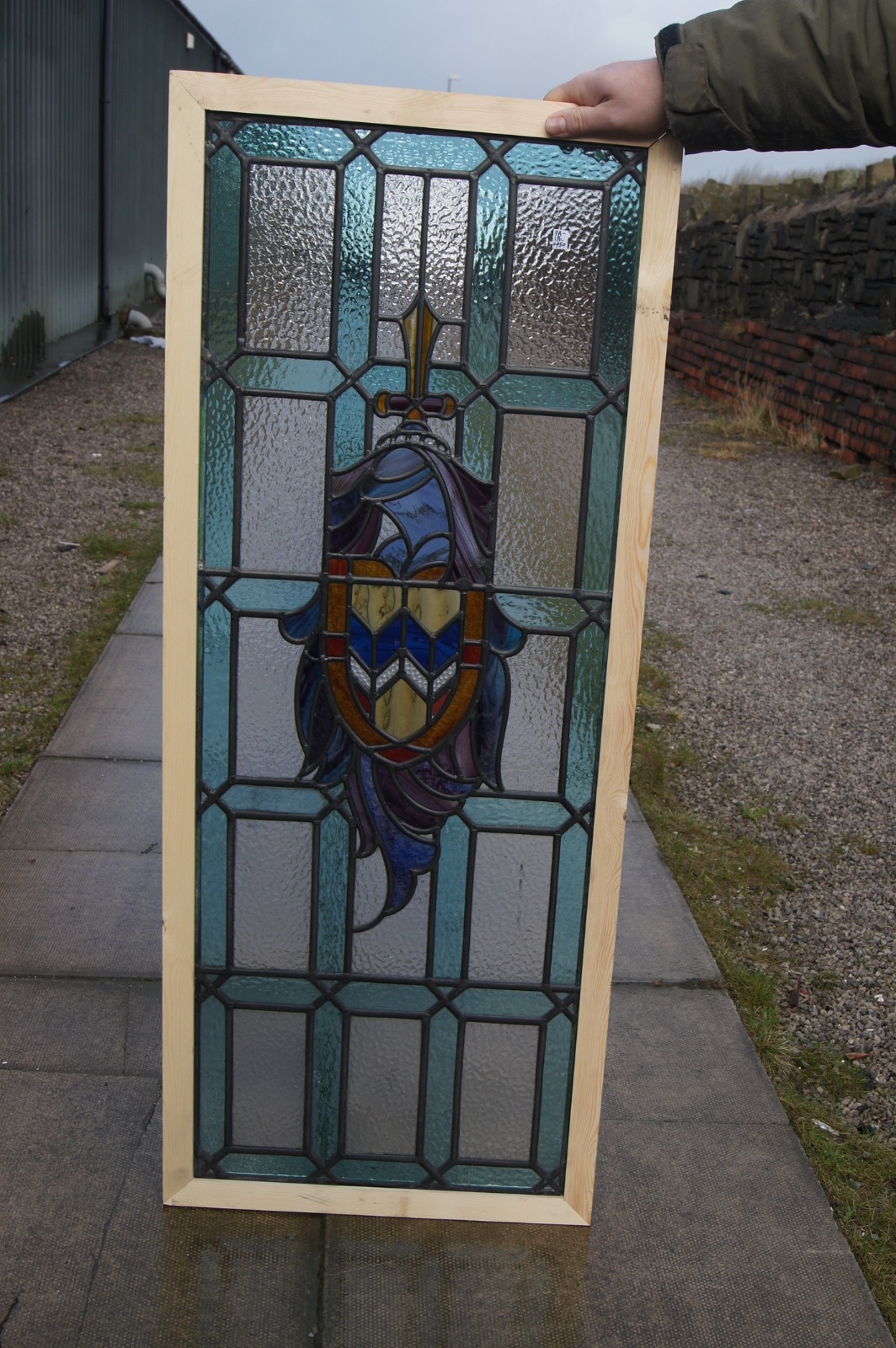 Very Good Pair of Heraldic Leaded Glass Windows c.1900