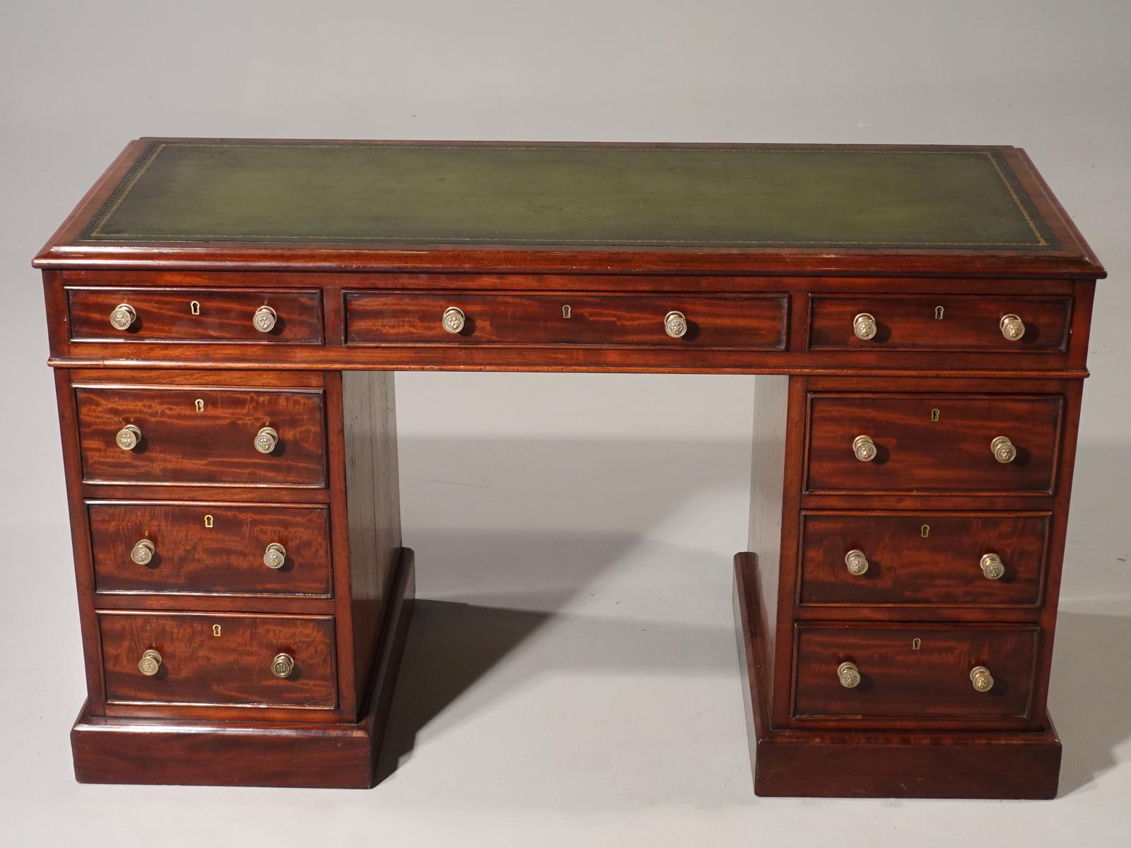 Very Good Quality Mid 19th Century Mahogany Centre Standing Pedestal Desk