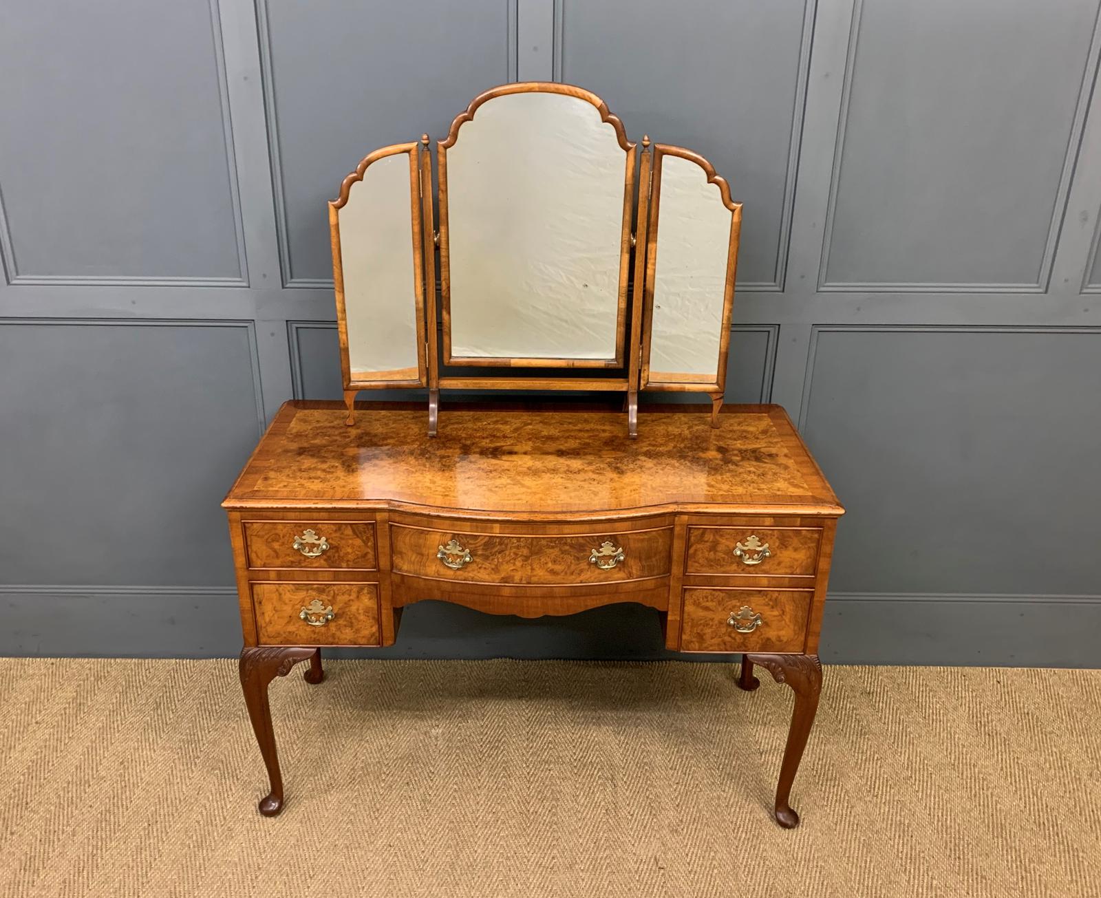 Very Good Queen Anne Style Burr Walnut Dressing Table