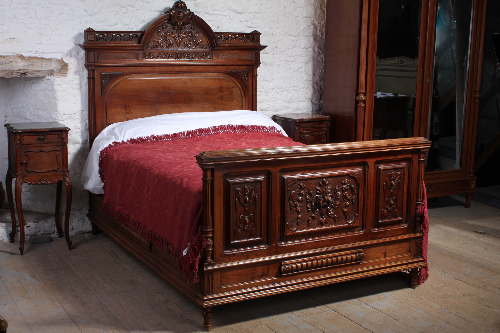 Very Handsome Carved Solid Walnut Double Bed