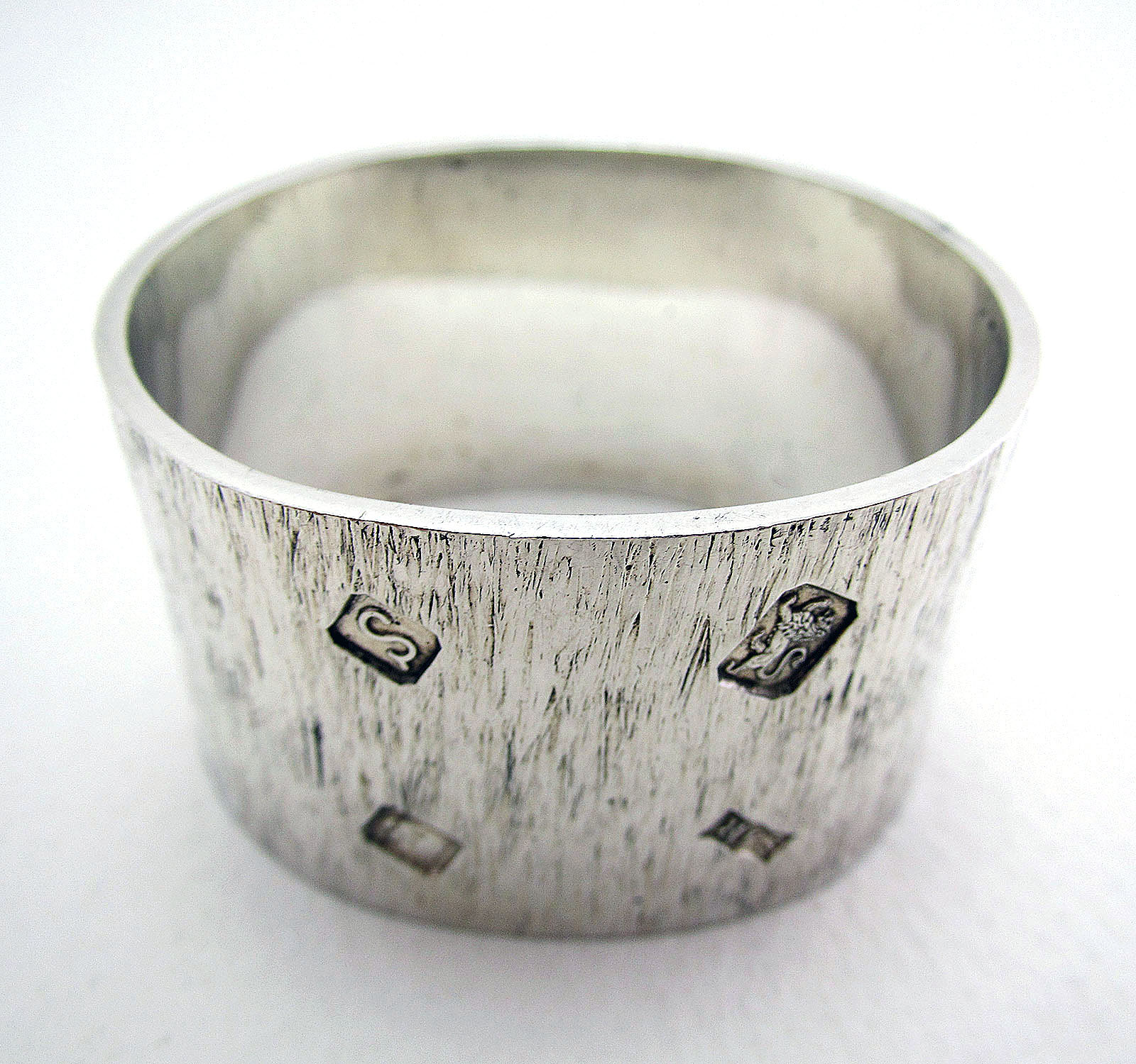 Very Heavy 67g! Bark Effect with Feature Hallmarks, Solid Sterling Silver Serviette Napkin Ring, Retro / Vintage 1973 (1 of 1)