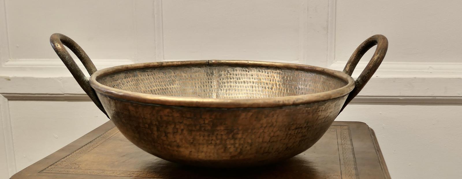 Very Heavy Hand Beaten Brass Dish with Handles