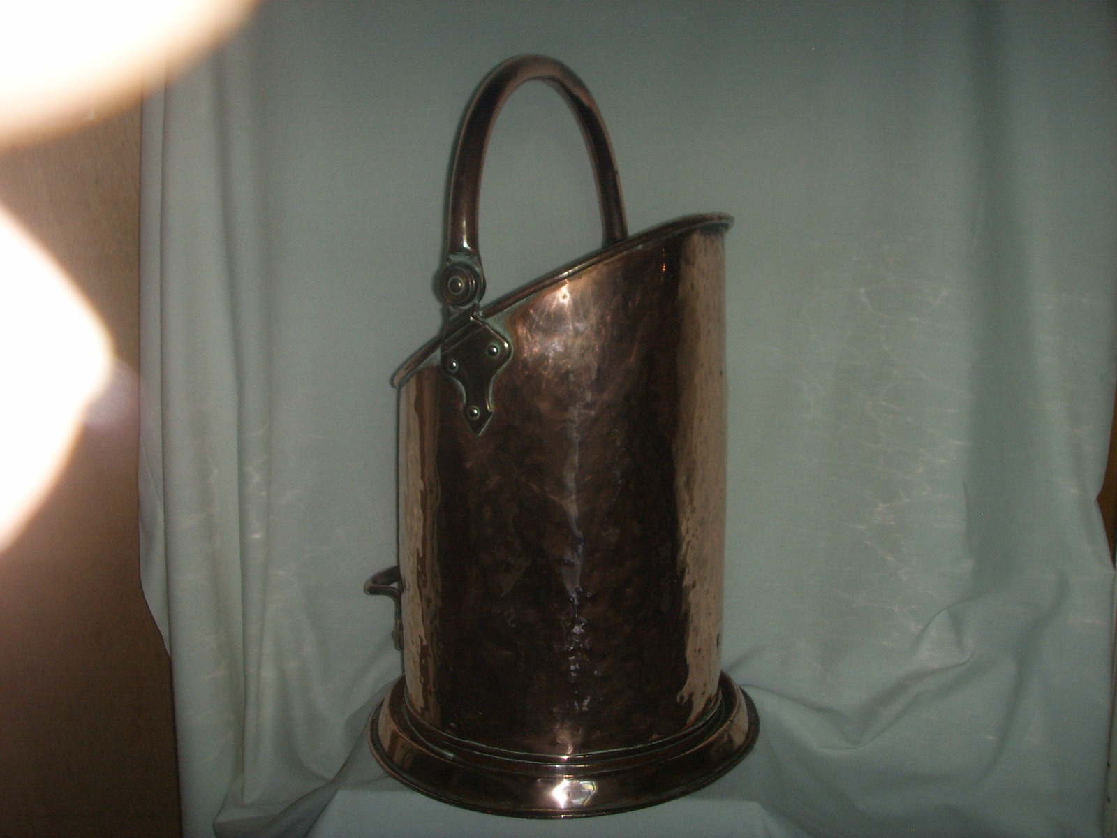 Very Heavy Large Copper Coal Bucket with Small Brass Handle & Hinges