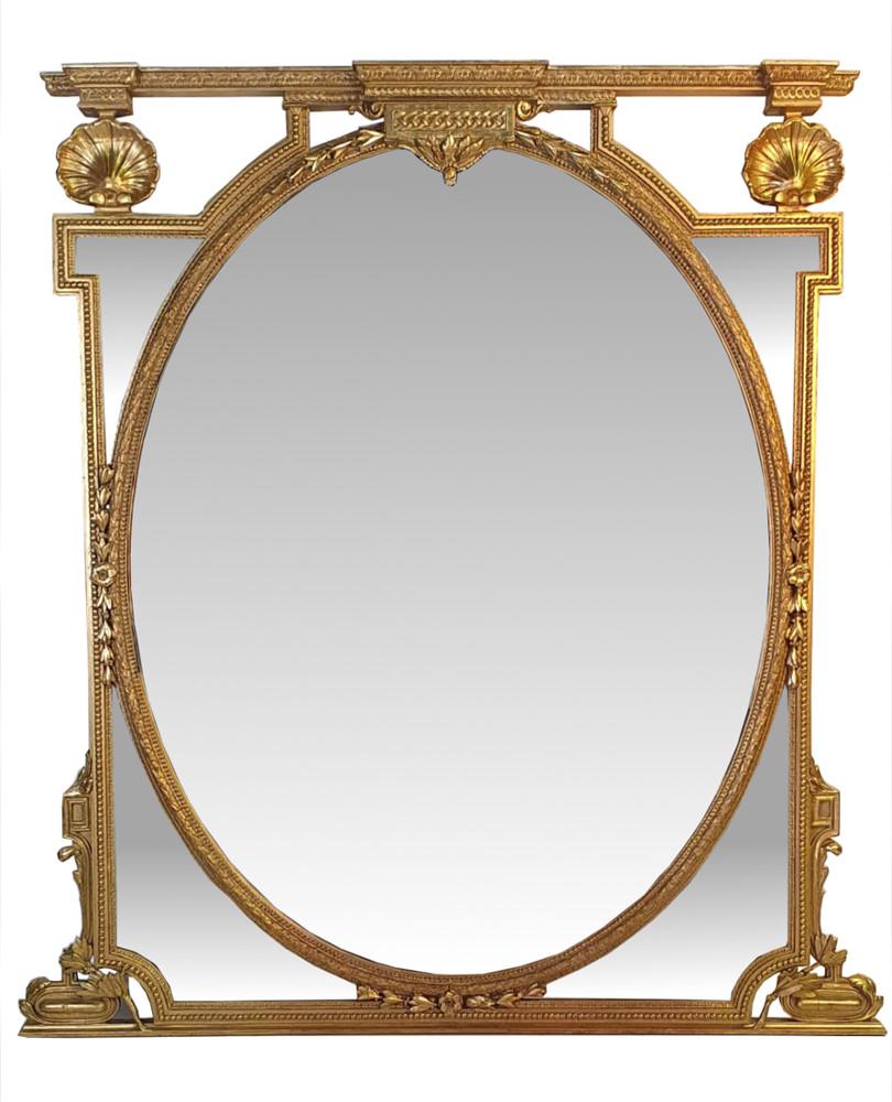 Very Large 19th Century Gilt Compartmental Oval Mirror