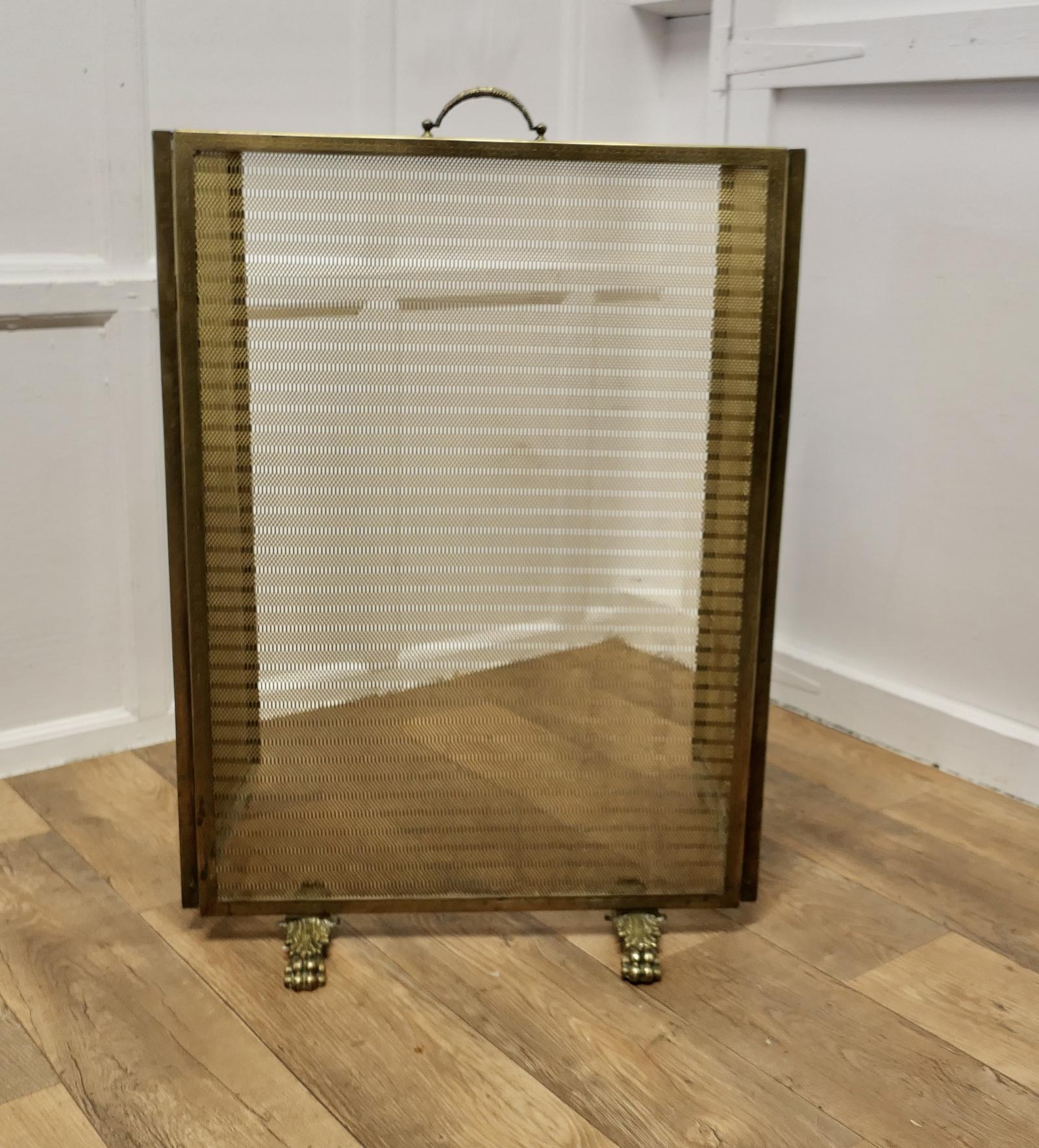 Very Large Adjustable French Chateau Brass Fire Screen / Fire Guard