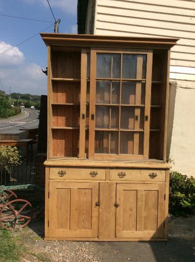 Very Large Antique Pine Dresser Sliding Glazed Doors