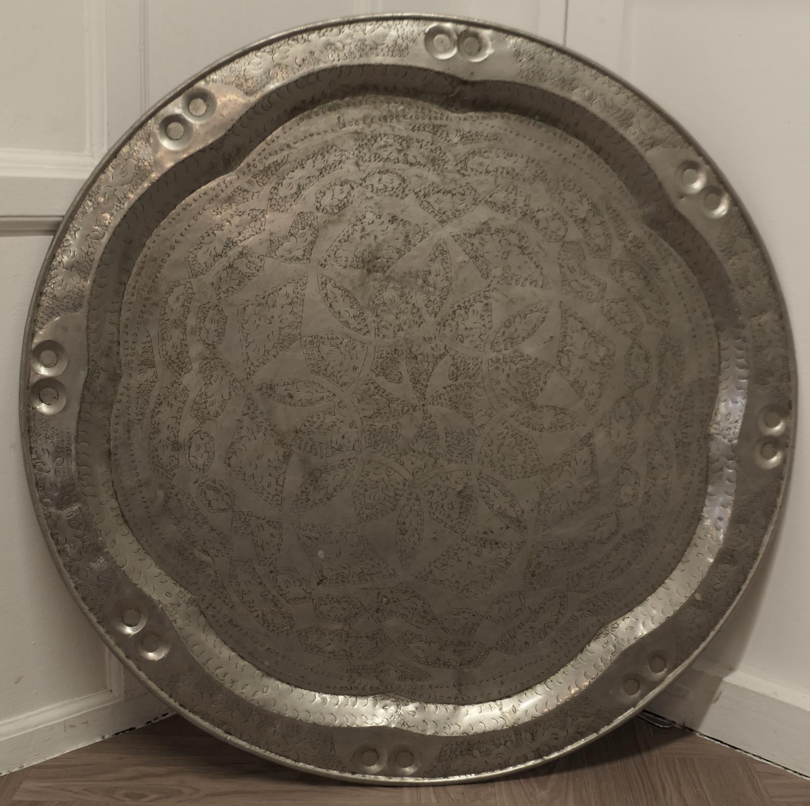 Very Large Arts & Crafts Beaten Pewter Wall Plate
