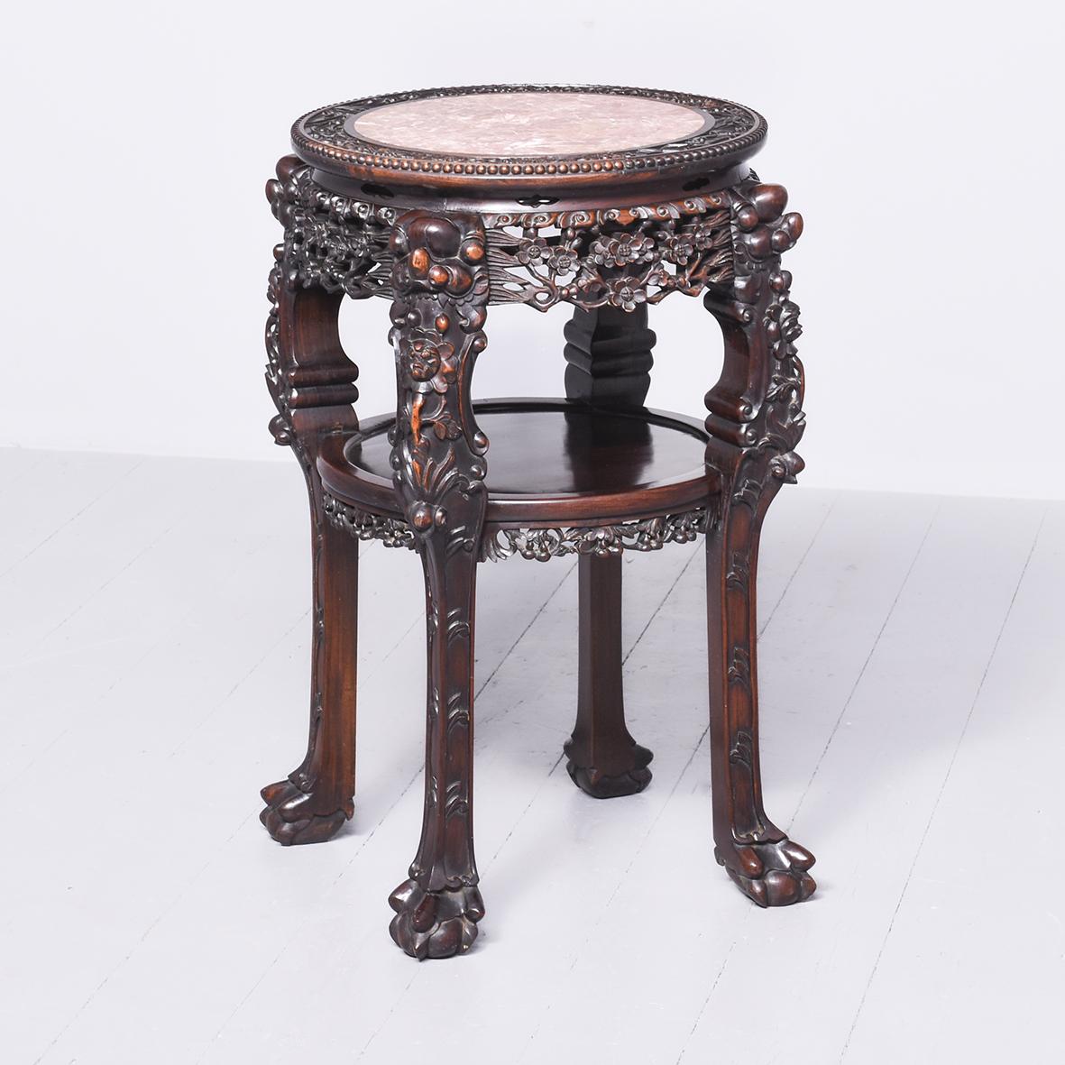 Very Large Chinese Carved Hongmu & Marble Plant Stand