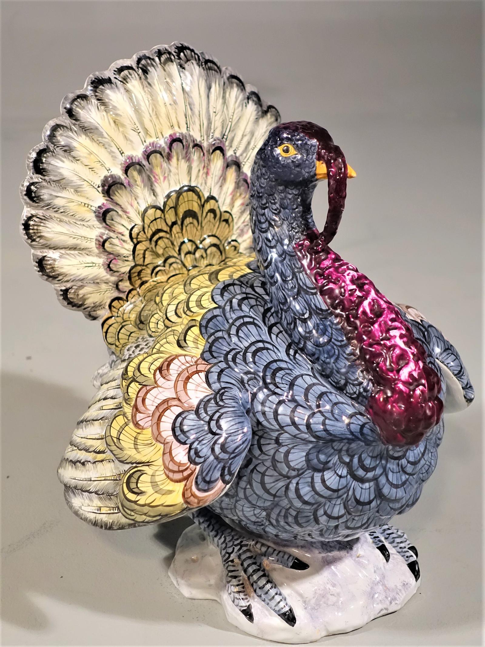 Very Large, Early 20th Century, Faience Pottery Male Turkey