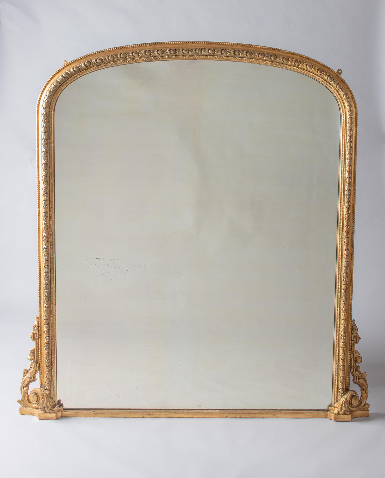 Very Large English Victorian Gilt Archtop Overmantle Mirror