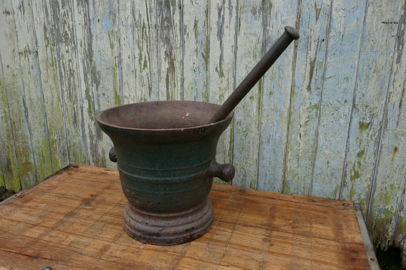 Very Large French Cast Iron Pestle & Mortar