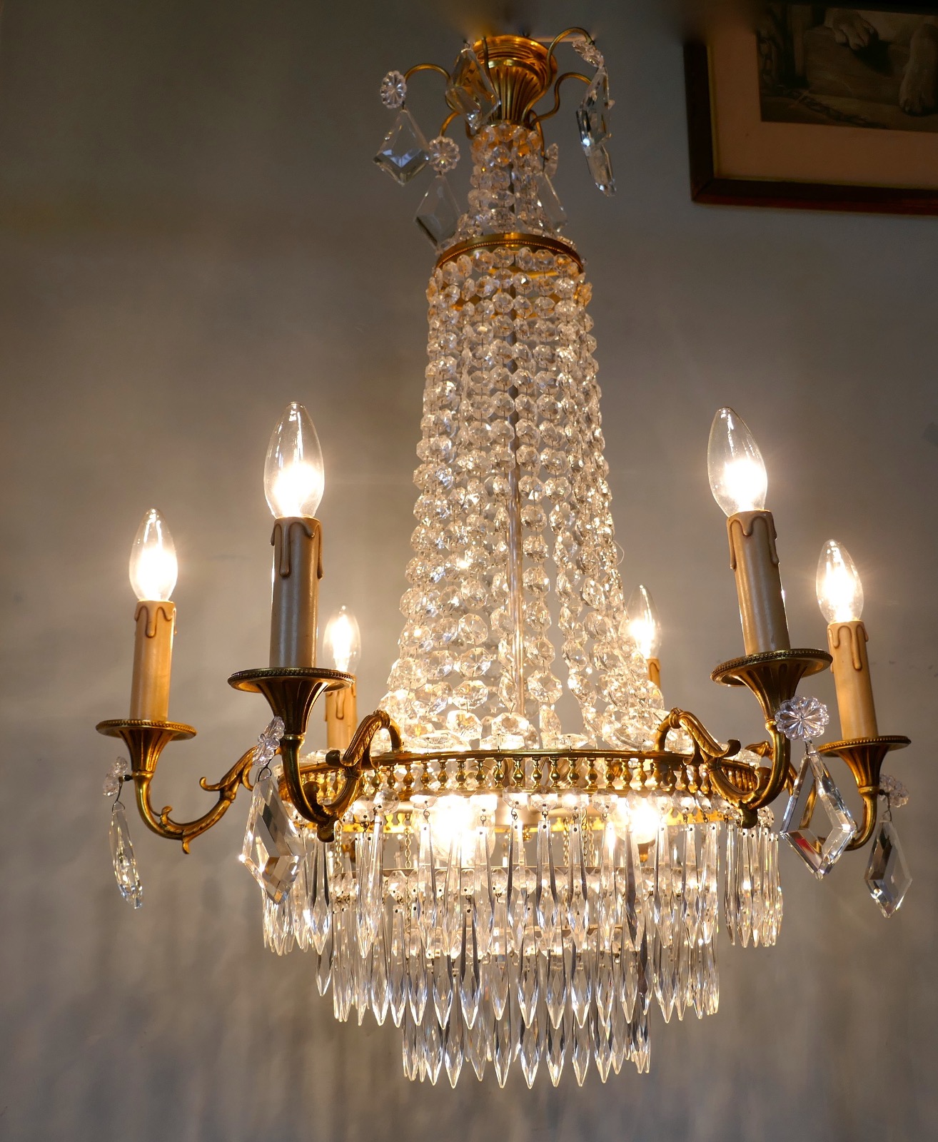 Very Large French Empire Style Tent & Waterfall Chandelier