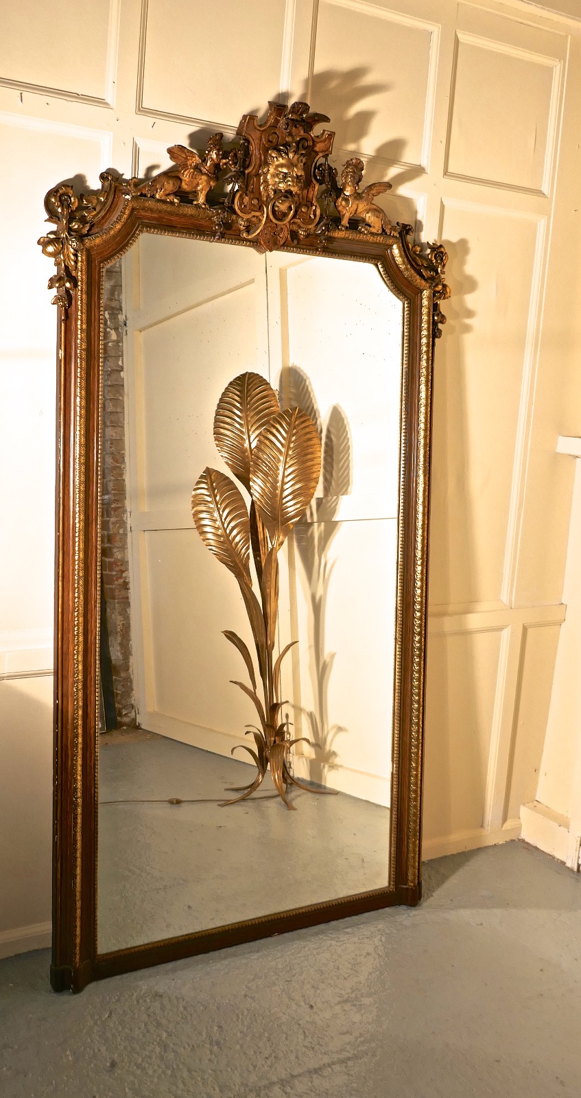 Very Large French Mirror, Winged Sphinx & Lyons Mask Crest