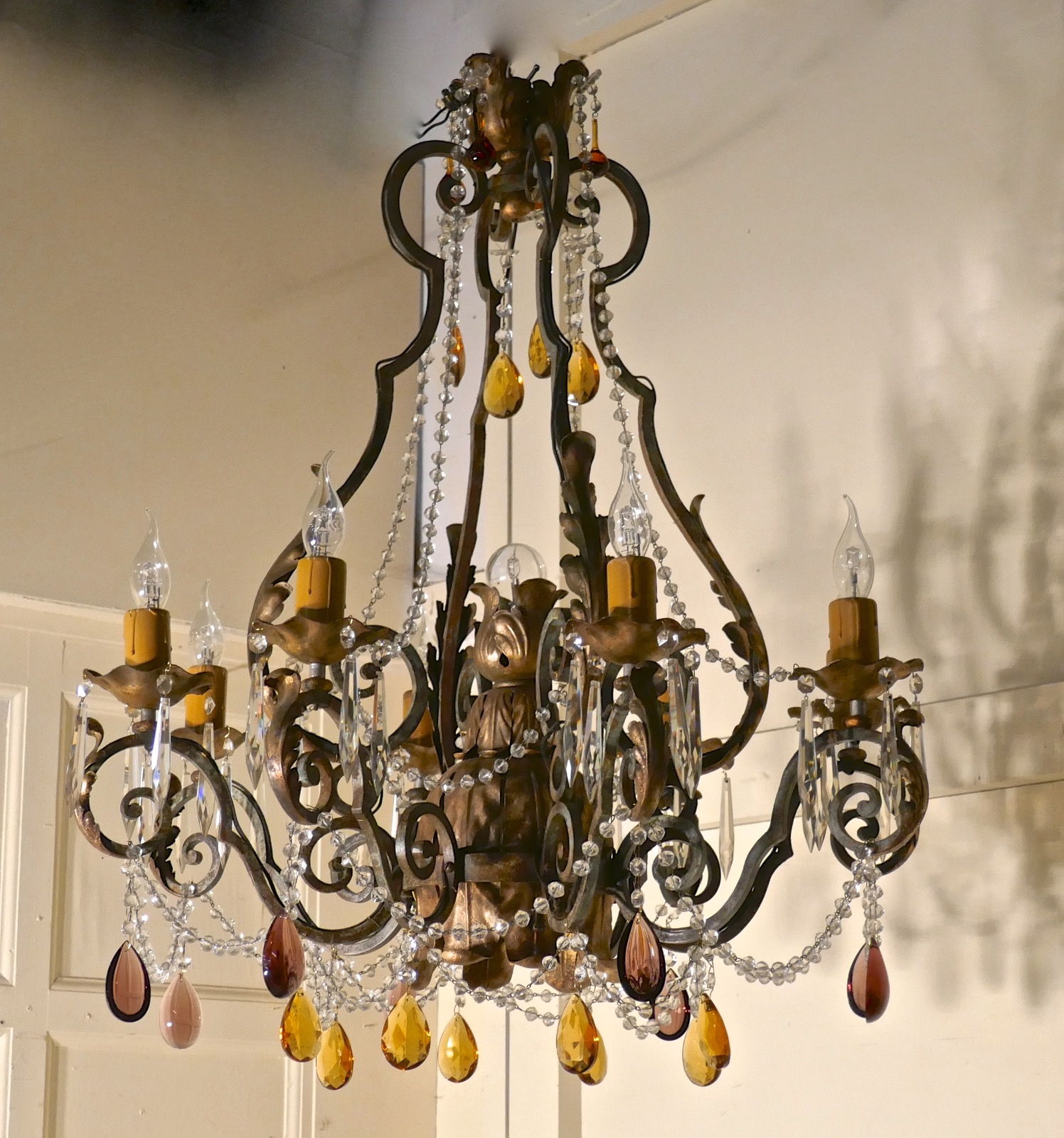 Very Large French Wrought Iron & Gilt 8 Branch Chandelier
