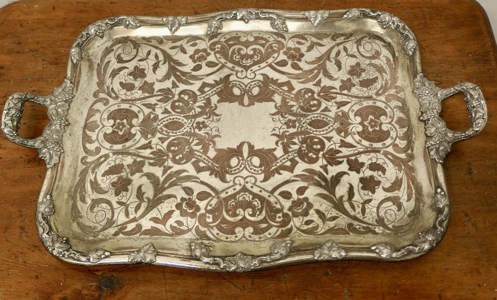 Very Large & Heavy French Silver Plated Wine Tray