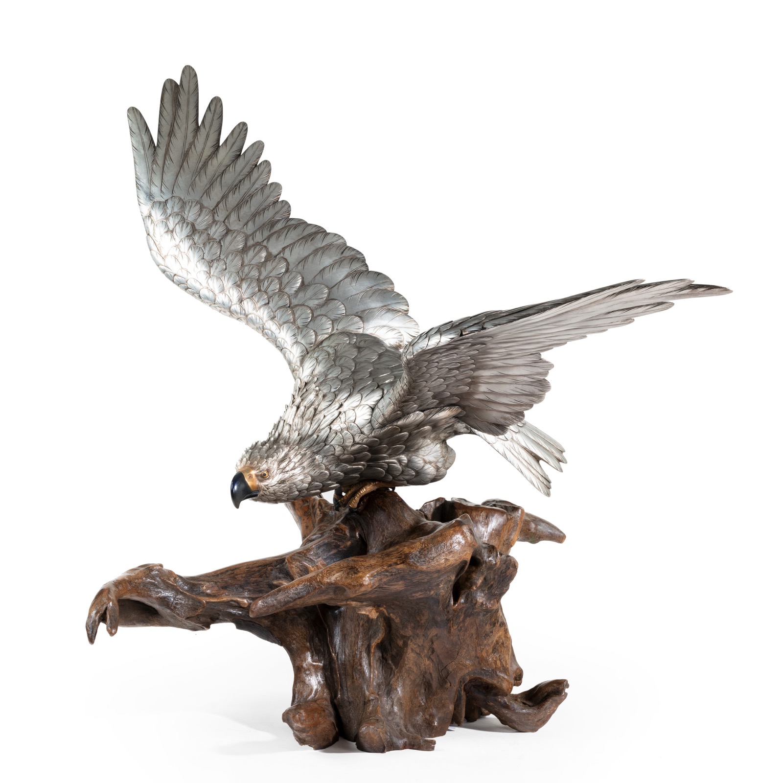 Very Large & Imposing Meiji Period Silvered Bronze Eagle