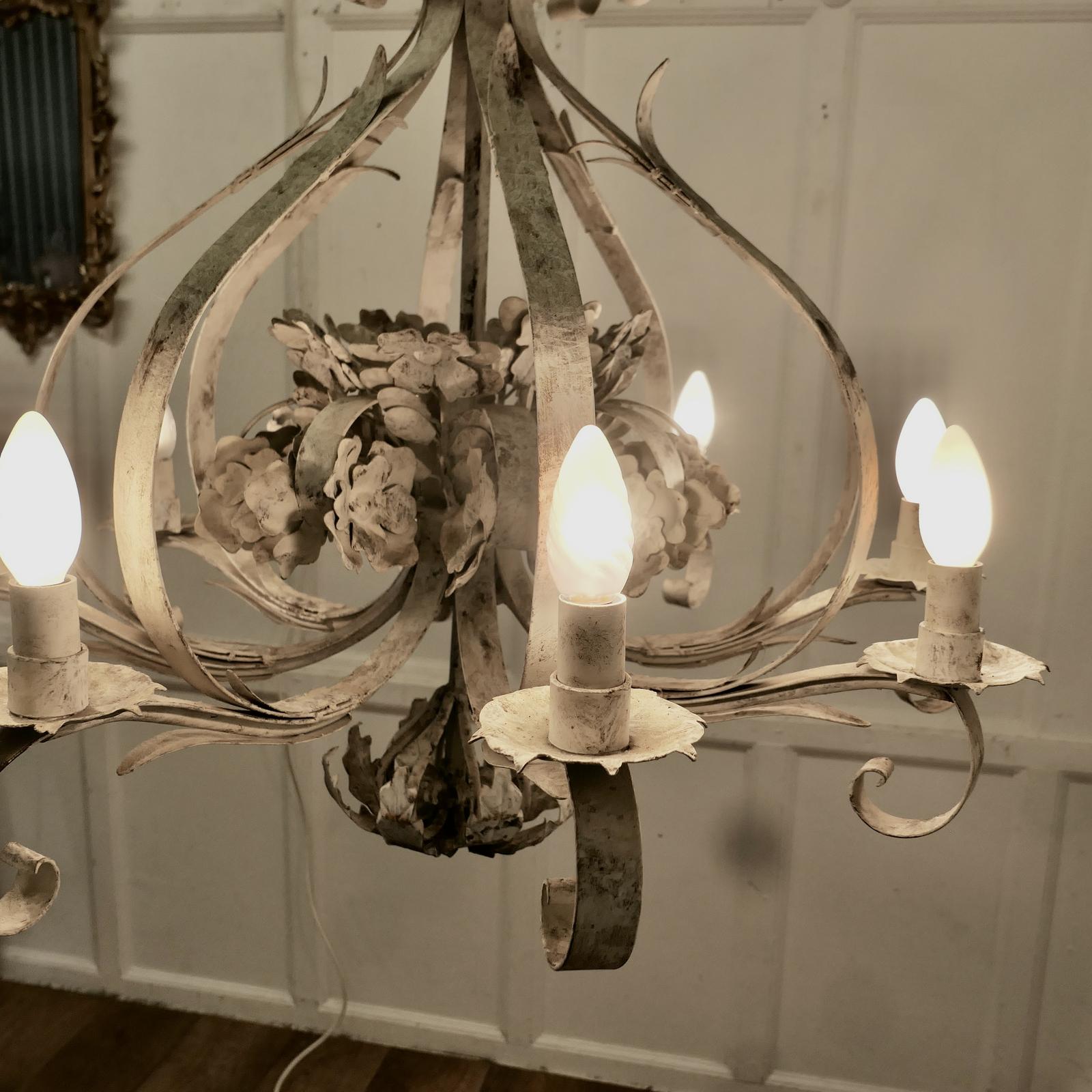 Very Large Italian 8 Branch Open Ceiling Chandelier, Distressed White