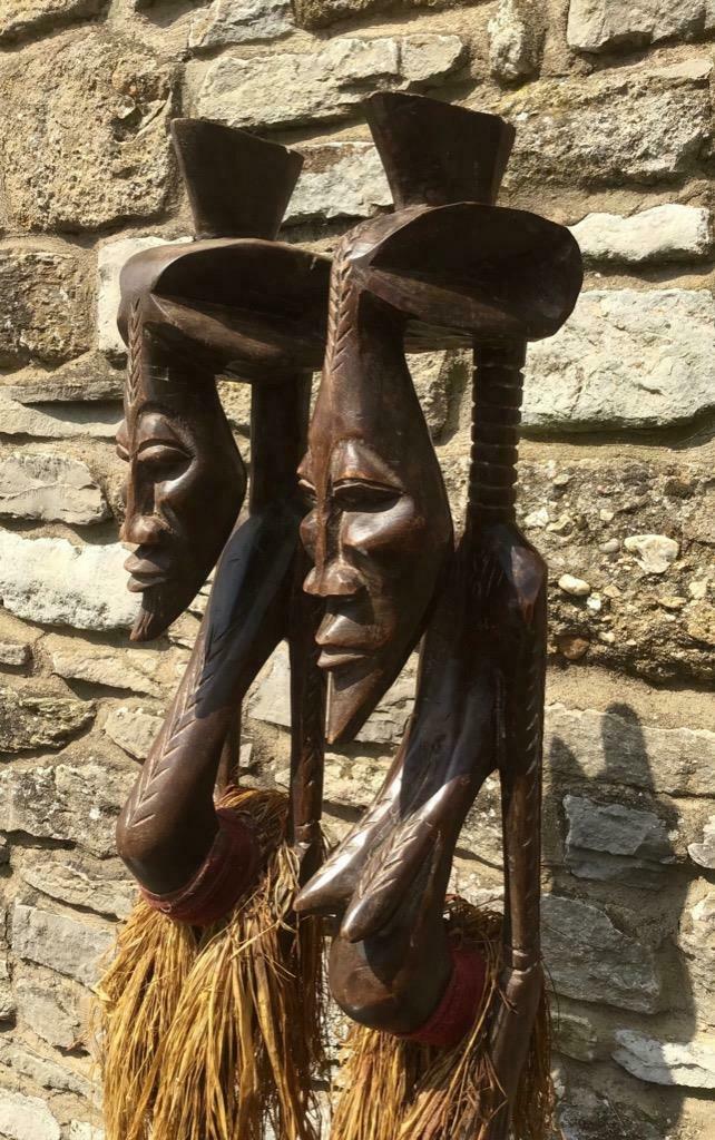 Very Large Pair of Senufo Hand Carved Wooden Figures. Ivory Coast West Africa