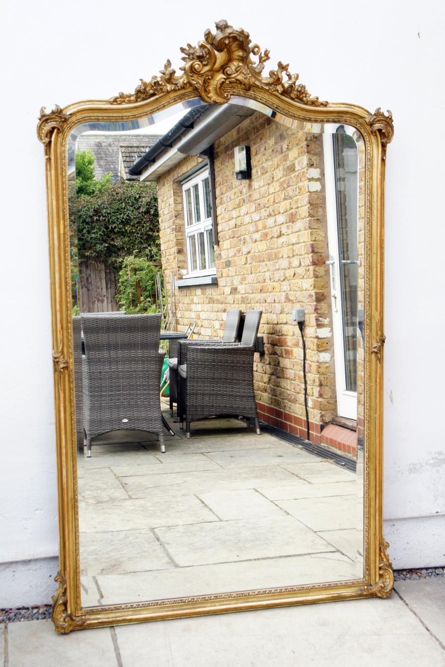 Very Large Victorian Giltwood & Gesso Arched Overmantle Mirror