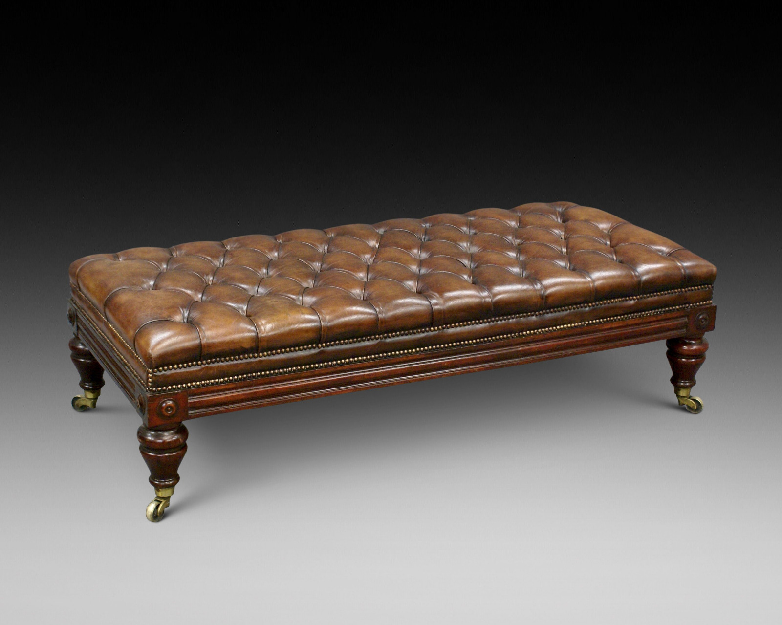 Very Large Victorian Leather Upholstered Stool