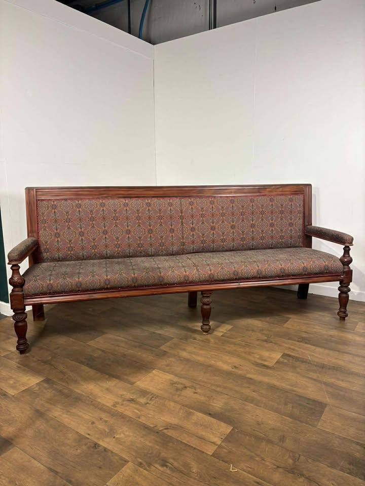 Very Large Vintage Mahogany Upholstered Bench with Turned Supports