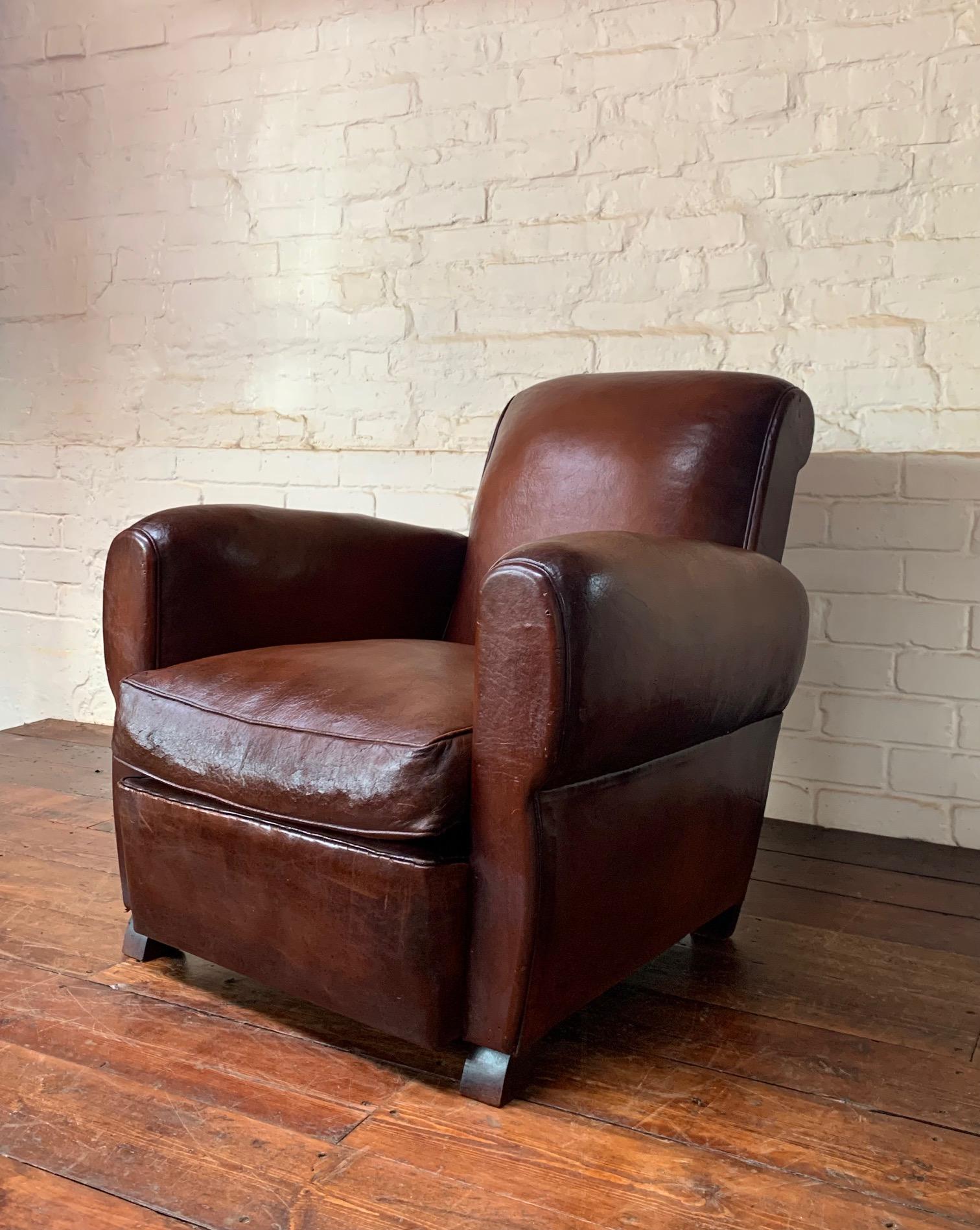 Very Lovely 1940s French Leather Club Chair - Havana Lounge Model